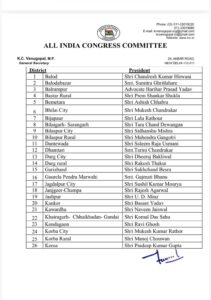 मनेंद्रगढ़-चिरमिरी-भरतपुर (MCB) – कांग्रेस पार्टी के संगठनात्मक सृजन (Organizational Restructuring) की प्रक्रिया के तहत, वरिष्ठ कांग्रेस नेता श्री अशोक श्रीवास्तव को एक बार फिर मनेंद्रगढ़-चिरमिरी-भरतपुर (MCB) ज़िले का जिलाध्यक्ष नियुक्त किया गया है। यह फैसला पार्टी आलाकमान द्वारा लिया गया, जो श्रीवास्तव जी के अनुभव और ज़मीनी पकड़ में उनके विश्वास को दर्शाता है।
